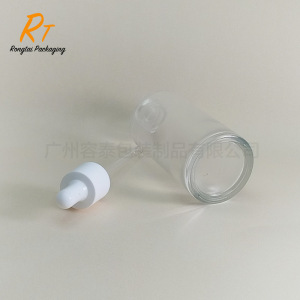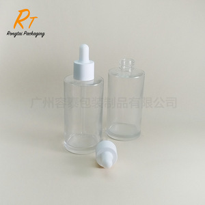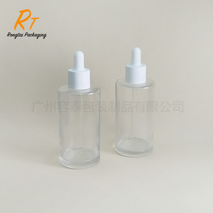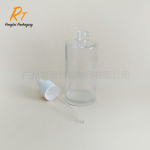 透明平肩圆柱精油瓶100ml50ml精华液胶头滴管玻璃瓶 化妆品分装瓶