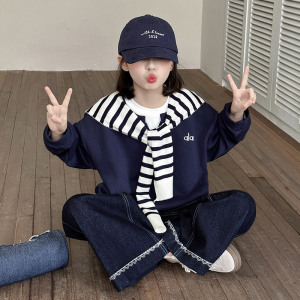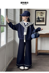女童秋装休闲套装2025新款韩版洋气女孩春秋披肩卫衣牛仔裤