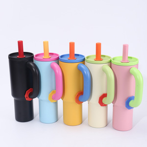 新款多巴胺手柄冰霸杯304不锈钢真空保温杯大容量便携吸管汽车杯