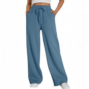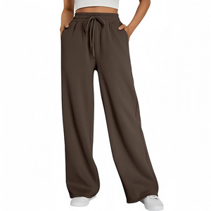 亚马逊跨境外贸男女阔腿运动裤高腰宽松抽绳慢跑裤带口袋卫裤现货