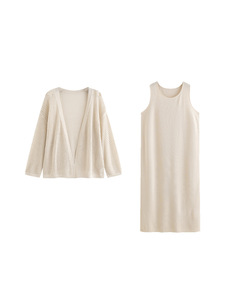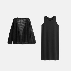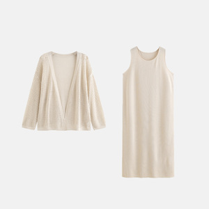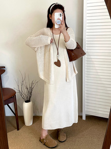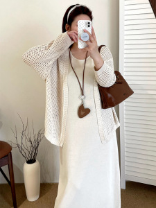 大码女装镂空外套女内搭背心裙套装2025秋款胖mm针织两件套23286