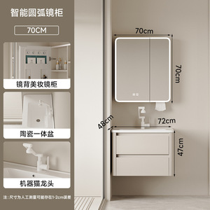 70CM-智能全封圆弧镜柜【胡桃木色/深灰色备注】