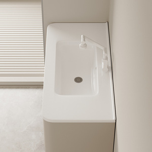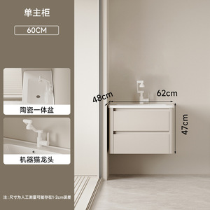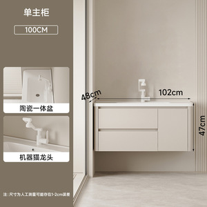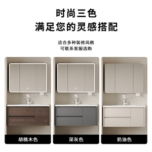 胡桃木色中古风浴室柜陶瓷一体盆加厚蜂窝铝双抽屉洗手盆柜组合