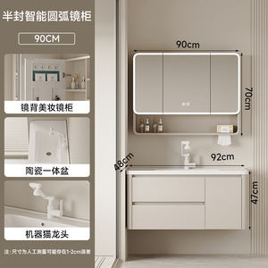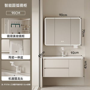 90CM-智能全封圆弧镜柜【胡桃木色/深灰色备注】