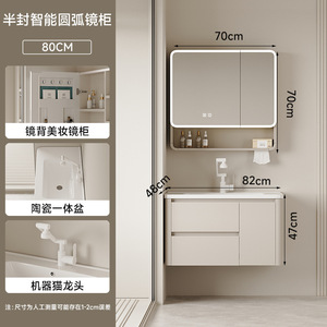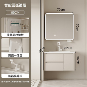 80CM-智能全封圆弧镜柜【胡桃木色/深灰色备注】