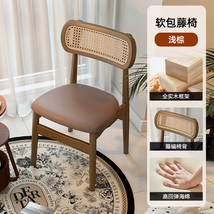 实木餐椅家用北欧中古风藤编椅子靠背椅餐厅吃饭餐桌椅凳子休闲椅
