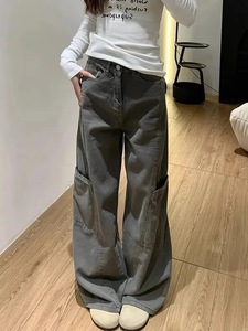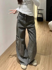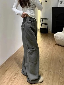 【韩牛】阔腿工装牛仔裤女新款宽松潮款梨型身材遮肉显瘦直筒裤