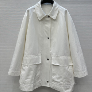 白色翻领长袖夹克外套 美式休闲风宽松百搭中长款开衫秋 BW80793