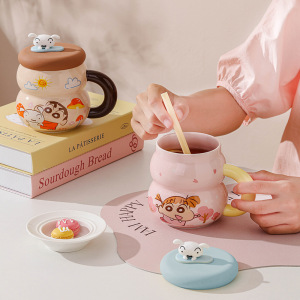 蜡笔小新带盖马克杯陶瓷杯水杯家用早餐咖啡杯葫芦杯卡通可爱