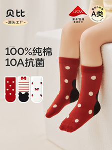 贝比儿童袜子春秋款100%纯棉无骨宝宝袜子卡通蝴蝶结中筒婴儿袜子