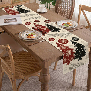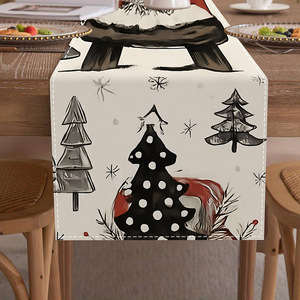 亚马逊跨境新款圣诞节桌旗 厂家直销冬季雪人圣诞树印花餐桌垫