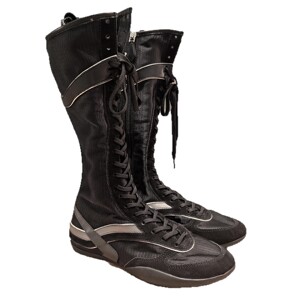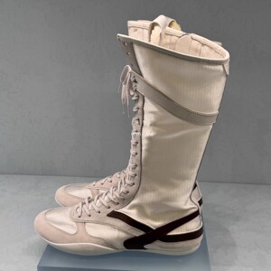 羊皮版~小众miu系轻便软底马丁靴女德训拳击长靴拼接绑带长筒靴女