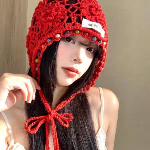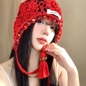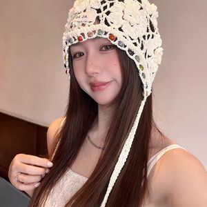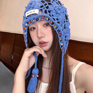 复古编织镂空流苏花朵包头帽女新疆川西旅游套头帽显脸小头巾帽潮
