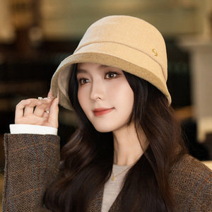 秋冬新款帽子女百搭褶皱英伦风渔夫帽日系复古水桶帽户外休闲盆帽