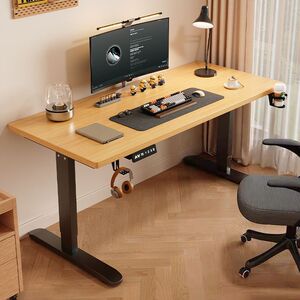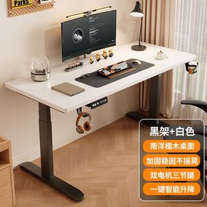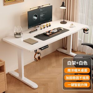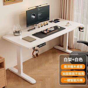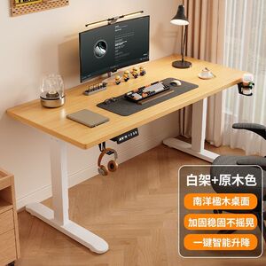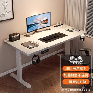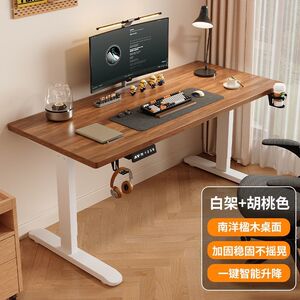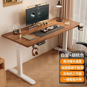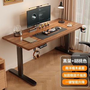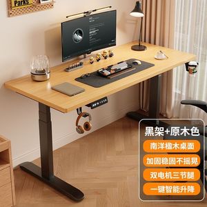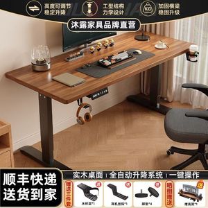 实木电动升降桌学习电脑桌可升降电竞桌子卧室家用办公书桌工作台