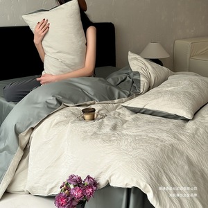 高级感~100S高支提花全棉四件套简约轻奢贡缎长绒棉纯棉床上用品