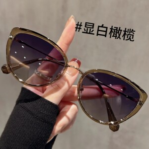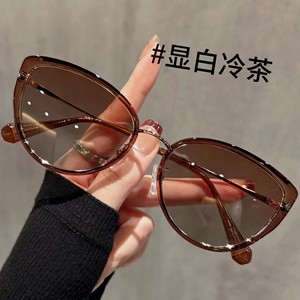 显白橄榄猫眼墨镜男女同款2025新款高级感开车专用防紫外线太阳镜