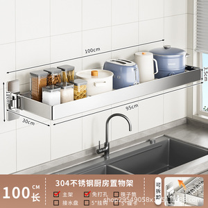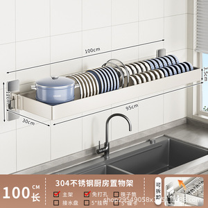 【304不锈钢】原色100cm标配置物架+筷子筒+接水盘+挂钩+碟片