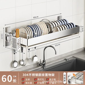 【304不锈钢】原色60cm标配置物架+筷子筒+接水盘+挂钩+碟片