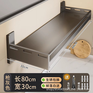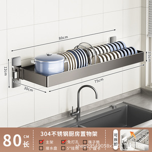 【304不锈钢】枪灰80cm标配置物架+筷子筒+接水盘+挂钩+碟片