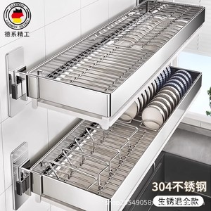 304不锈钢厨房置物架壁挂式碗碟收纳架墙上水槽沥水盘子挂壁碗架