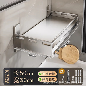 【304不锈钢】原色80cm标配置物架+筷子筒+接水盘+挂钩+碟片.