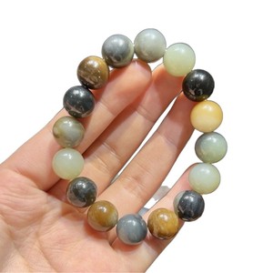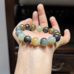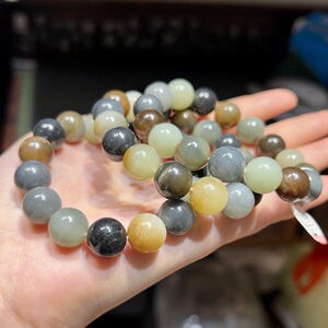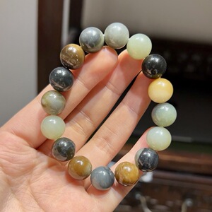 天然新疆和田玉楼兰三色手串卡12mm单圈圆珠且末糖手链直播供货