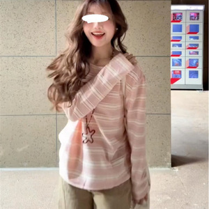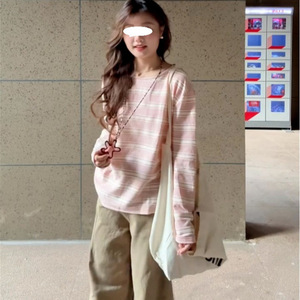 粉色条纹针织圆领长袖T恤女新款2025早秋穿搭韩系慵懒松弛感上衣