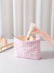 清新简约格子刺绣蝴蝶结化妆包女旅行护肤品洗漱包外出补妆包套装