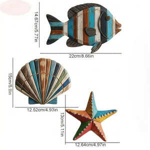 跨境热销1套色彩缤纷的海洋艺术-木质海鱼-贝壳-海星农舍风格装饰