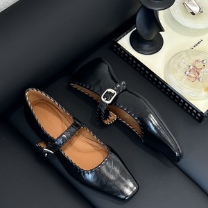 滨莉25秋季复古手工穿线玛丽珍显瘦软底一字带浅口平底内增高单鞋