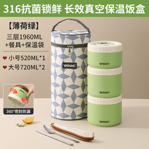 (加大容量)薄荷绿 三层1960ML小号+大号+大号(饭/菜/汤)餐具+保温袋