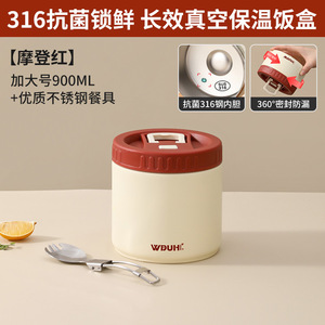 【316抗菌锁鲜-摩登红】加大号900ML+折叠勺子+保温袋