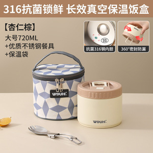 【316抗菌锁鲜-杏仁棕】大号720ML+折叠勺子+保温袋