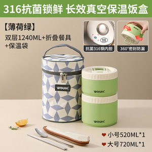 薄荷绿 双层1240ML小号+大号(饭/菜)餐具+保温袋