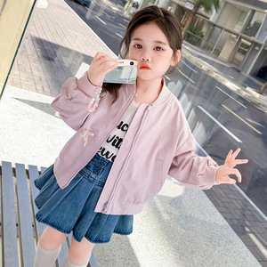 女童蝴蝶结夹克外套春秋款2025新款儿童韩版时尚小女孩休闲上衣潮