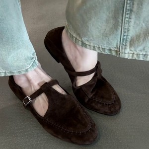 羊皮版~法式复古圆头绒面玛丽珍单鞋女2025新款两穿浅口平底单鞋