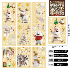 跨境圣诞节玻璃贴画白金圣诞场景布置装饰静电贴墙贴 pvc窗贴定制