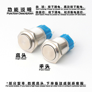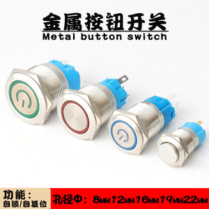 金属按钮开关8/12/16/19/22mm点动自复位12V启动电源24V自锁按键
