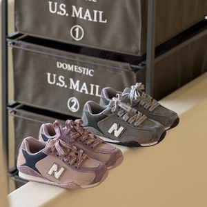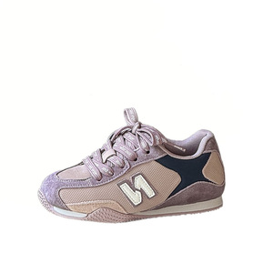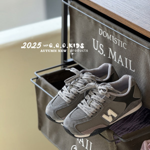 2025年秋季新款儿童时尚字母运动鞋韩版男女童真皮拼色复古德训鞋