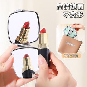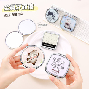 小熊饼方形小镜子随身携带迷你化妆镜双面便携学生宿舍手持折叠镜