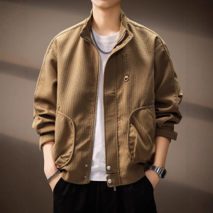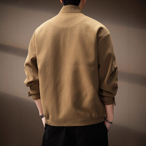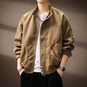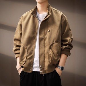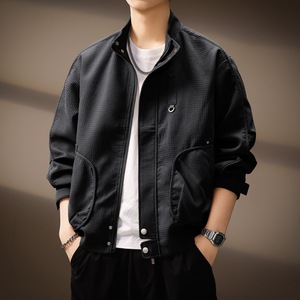 高端设计感潮流格纹纯色立领夹克男士秋季新款多口袋宽松百搭外套