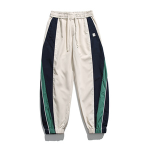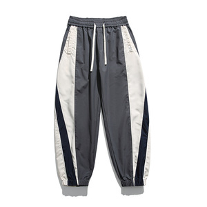跨境侧边条纹拼接撞色休闲裤男士春秋季city街头运动束脚潮牌卫裤
