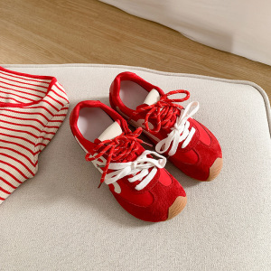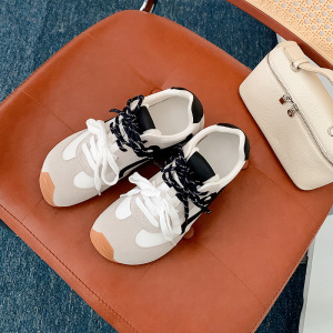 厚底内增高德训鞋女2025夏季新款真皮复古鸳鸯带运动休闲阿甘鞋子