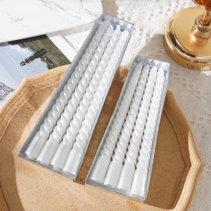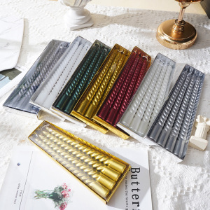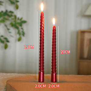 跨境批发欧式螺纹蜡烛浸漆白金银红色螺旋长杆蜡家居婚庆圣诞装饰