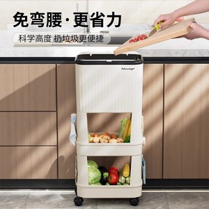 新款厨房垃圾桶家用大容量滑盖可移动双层高款免弯腰专用可置物架