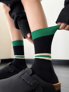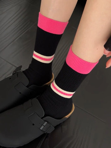 袜子简约配色撞色夏春新款ins潮条纹拼色袜子小众简约运动中筒袜