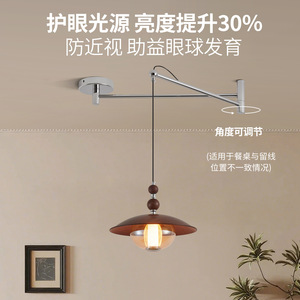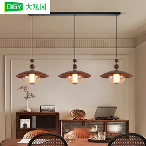 中古风餐厅吊灯美式复古2025新款木纹色饭厅吧台氛围感吊线灯668L