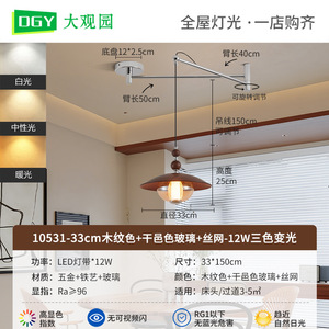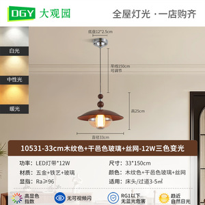 A款【单头款】木纹色+干邑色玻璃+丝网-12W三色变光-全光谱(大观园)