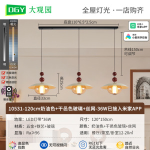【3头长盘】奶油色+干邑色玻璃+丝网-36W已接入米家APP-全光谱(大观园)